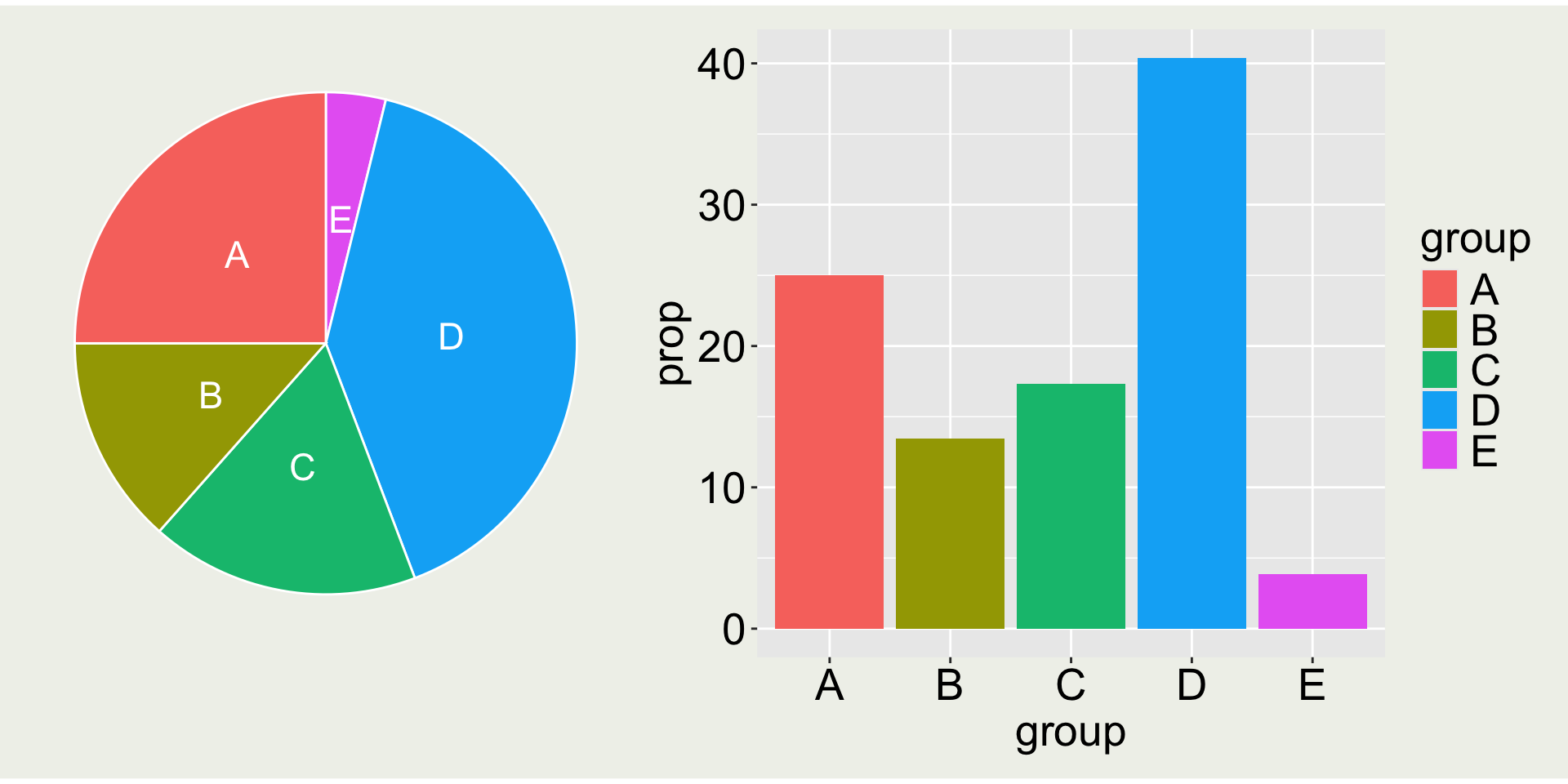 Pie chart is almost never a good idea, because it is hard to compare the size of the slices e.g. A vs. C