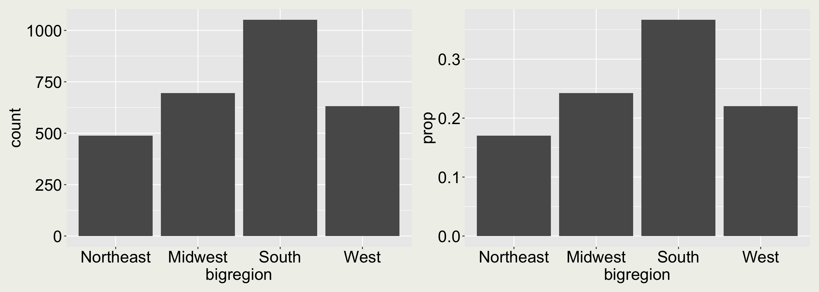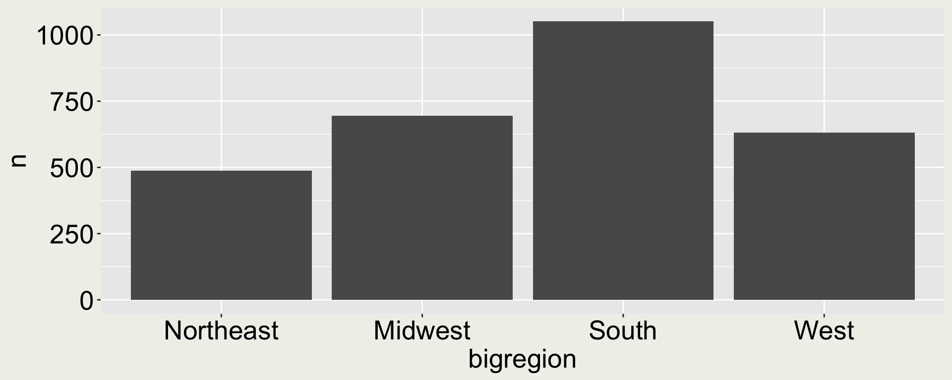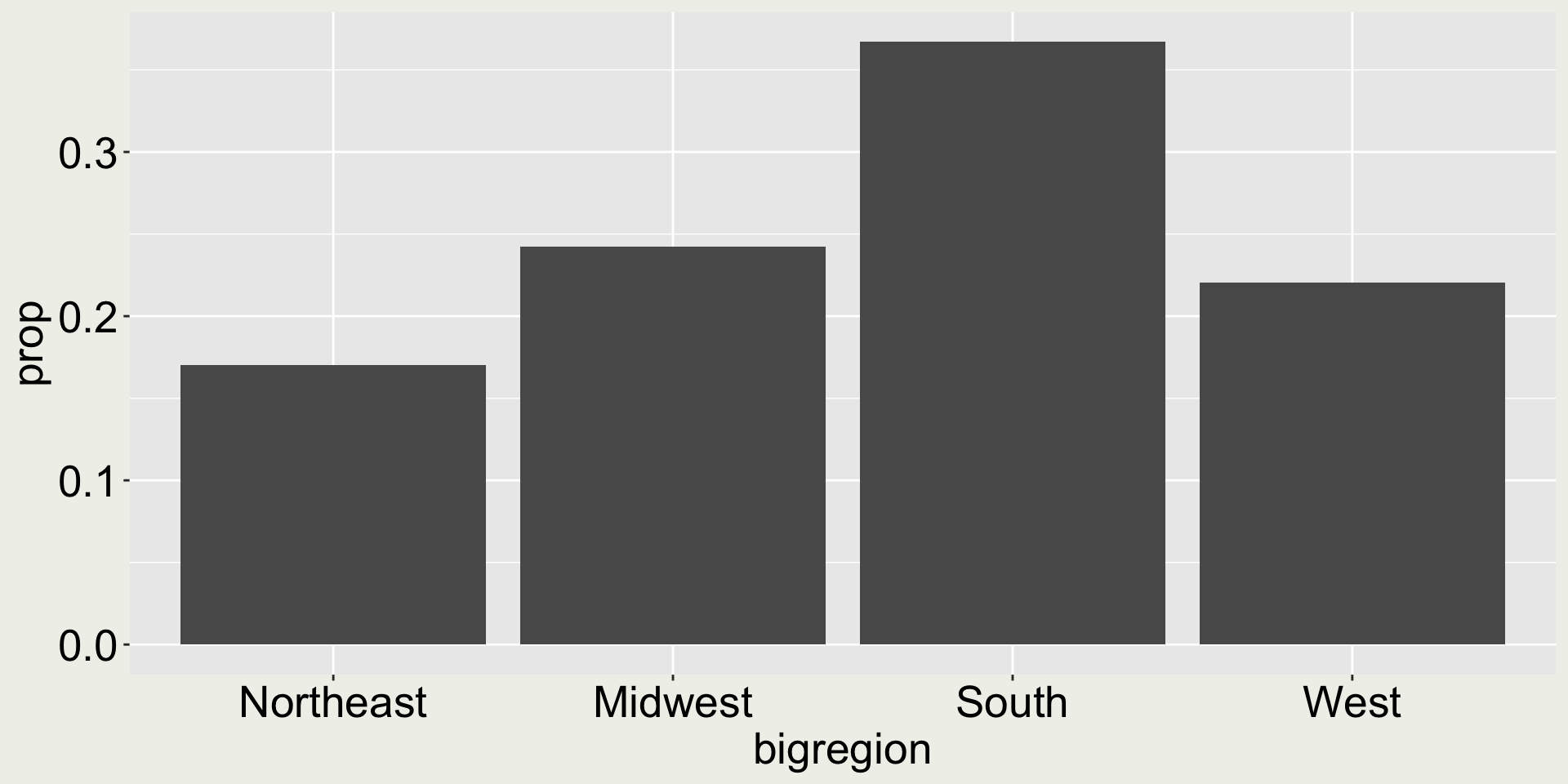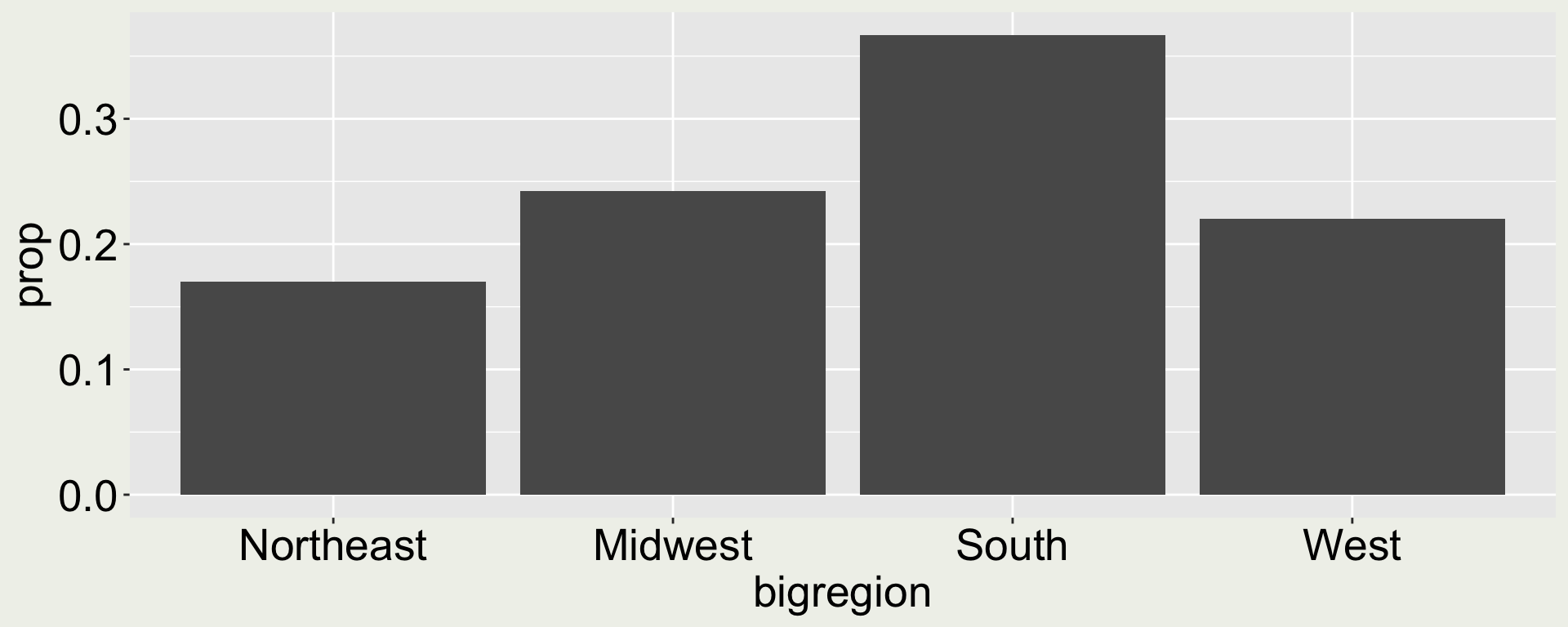 gss_cnt <- gss_sm |>count(bigregion) |>mutate(prop = n /sum(n))gss_cnt