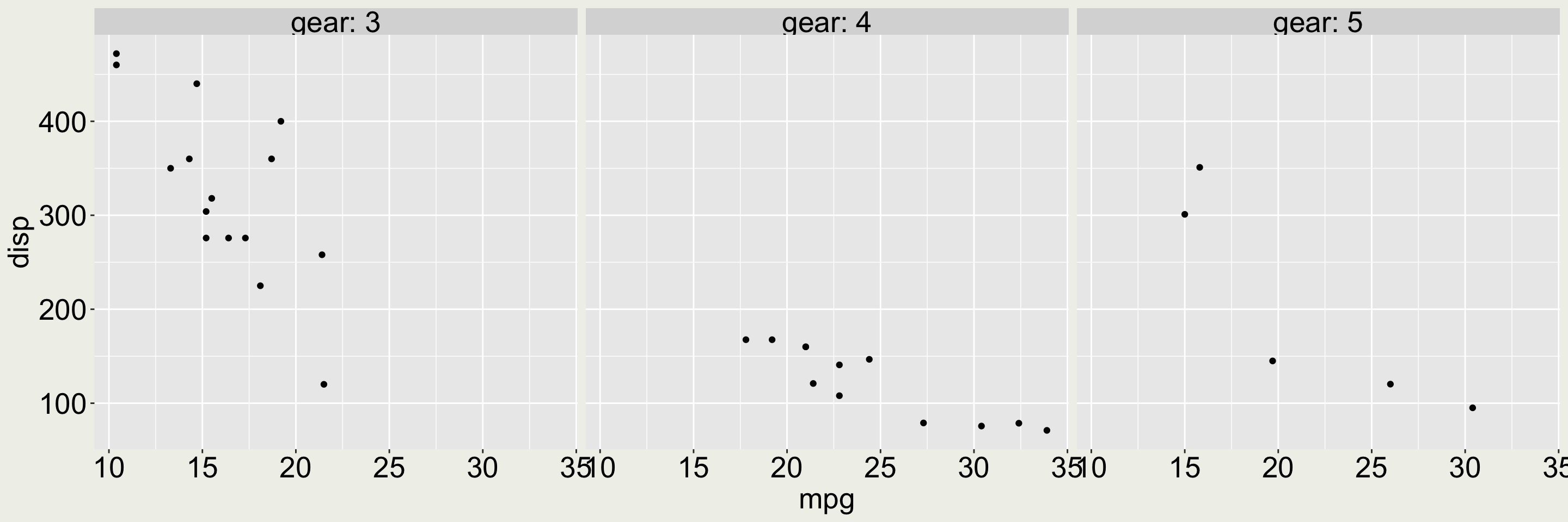 But in this example, labelling both the variable (gear) and the values (3, 4, 5) is useful because otherwise it is not clear what the values 3, 4, 5 refer to in the plot