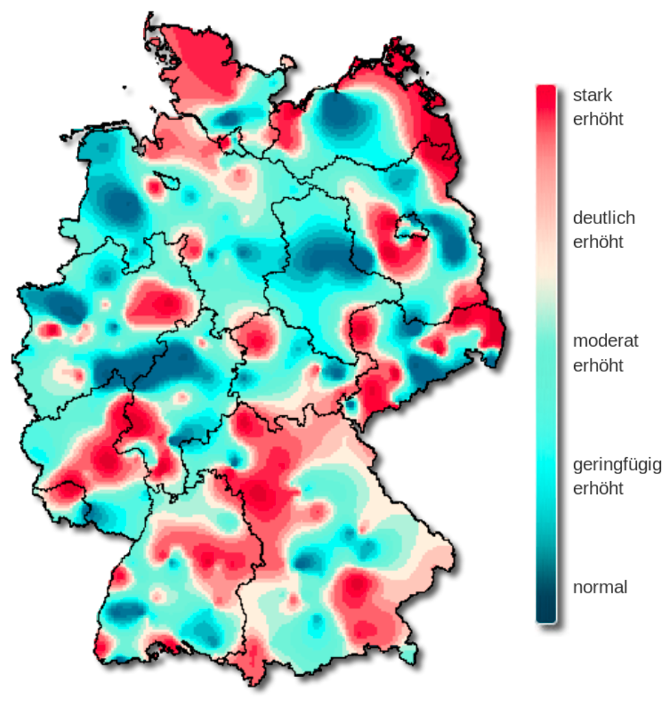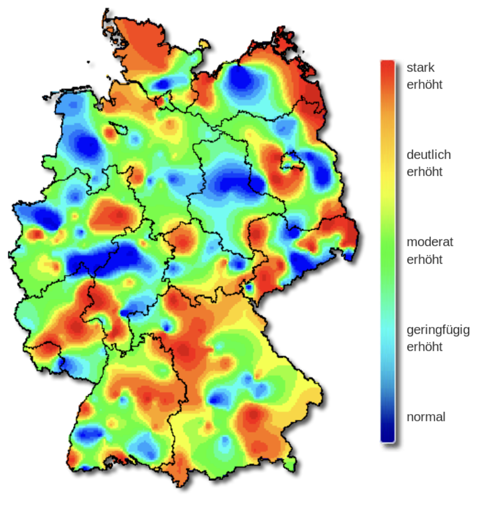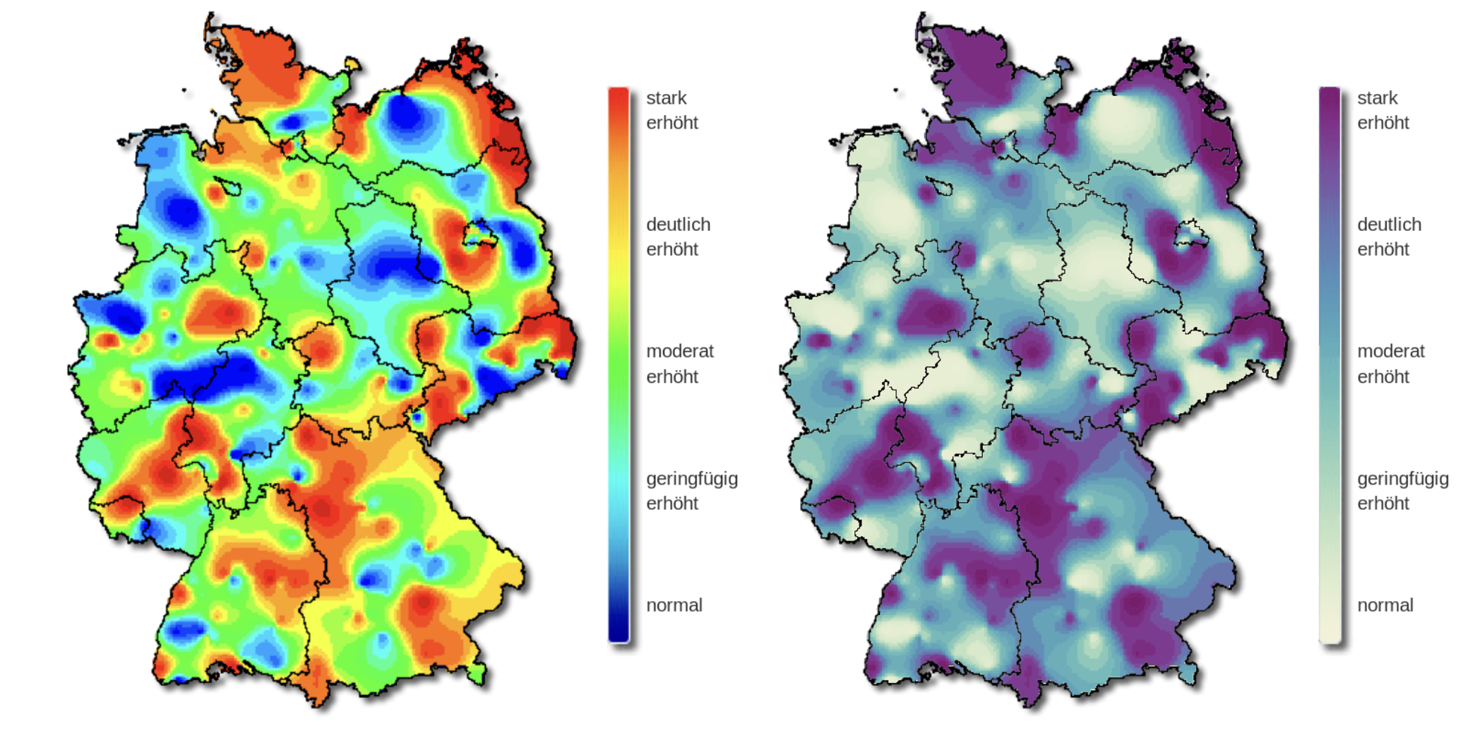 The original color palette (left) is the classic rainbow ranging from “normal” (blue) to “strongly increased” (red).