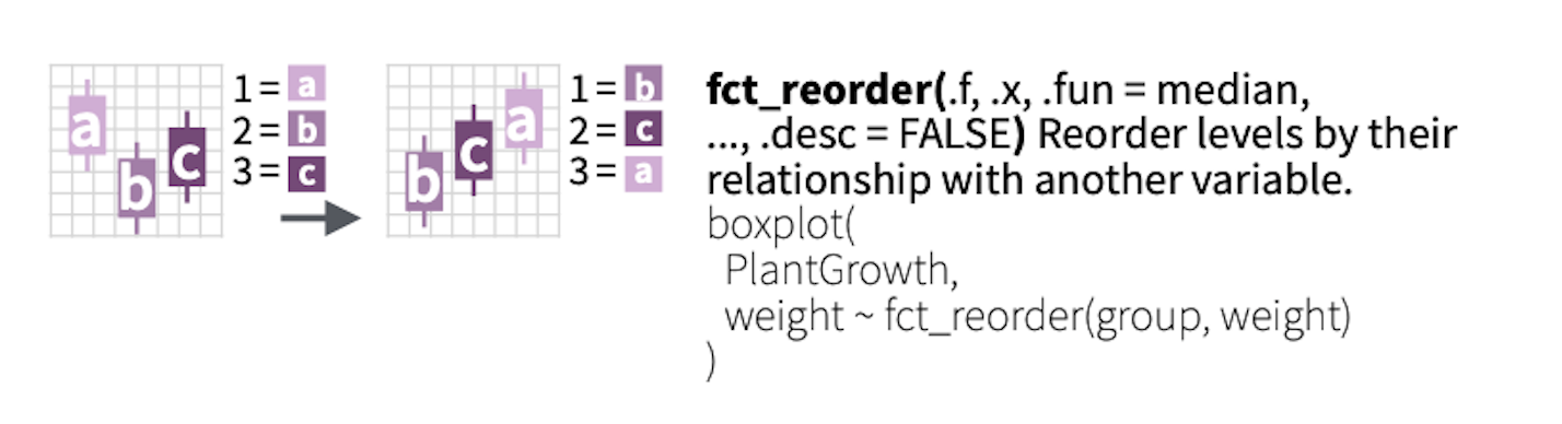 .f: the factor variable you want to reorderx: the variable you want to order by# A tibble: 3 × 2