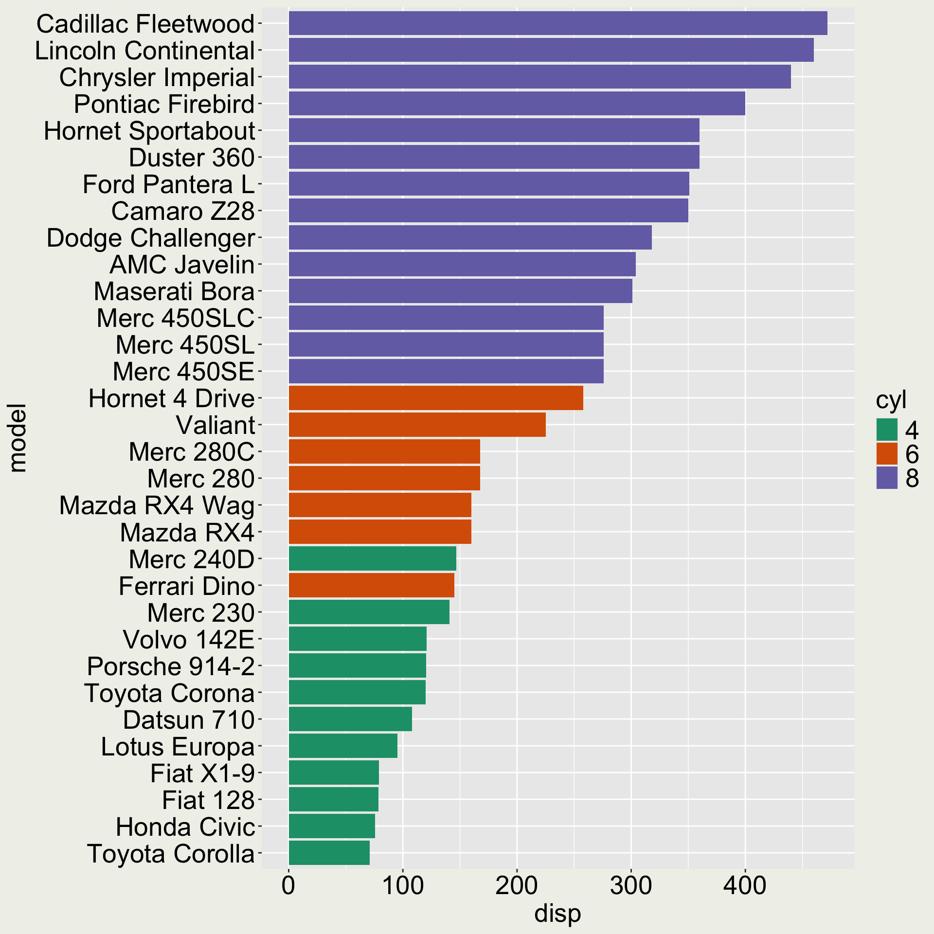 We would like the variable model to be ordered according to disp.