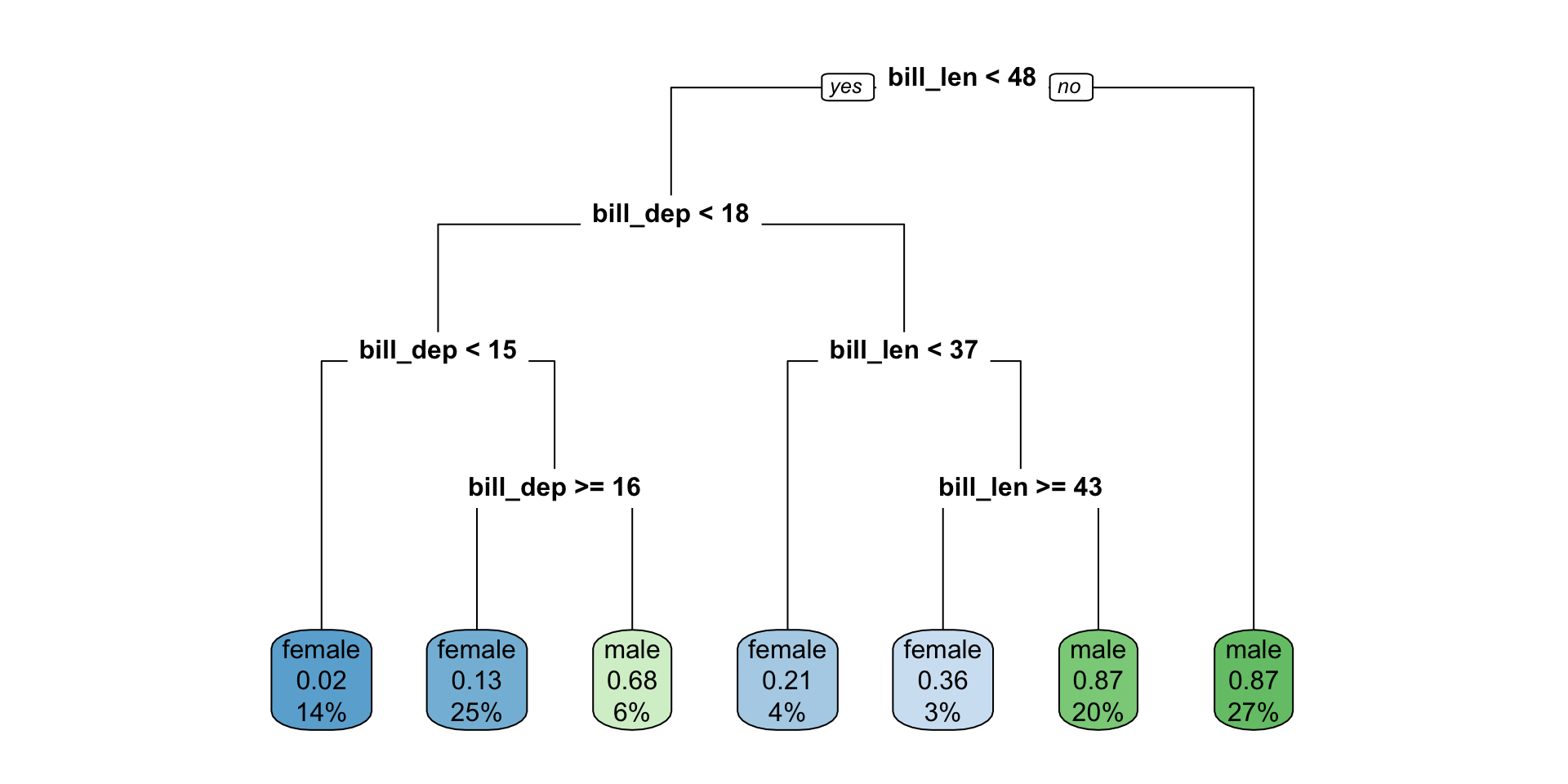 dt_cls_fit <- dt_cls_spec |> fit (sex ~ bill_len + bill_dep, data = datasets:: penguins)
