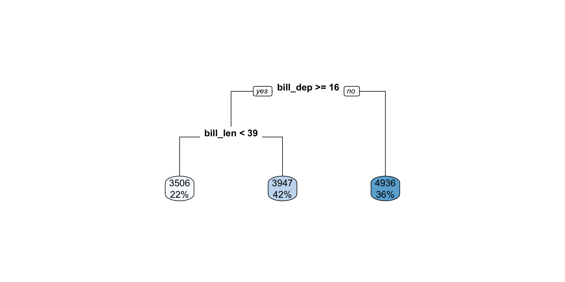 5) bill_len>=39.05 144 46073260 3946.528 *