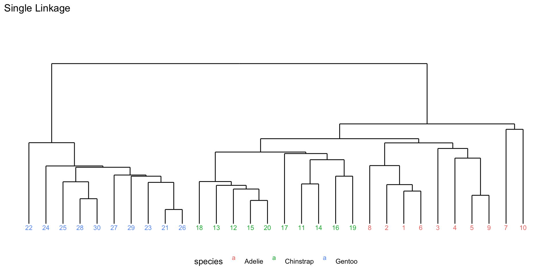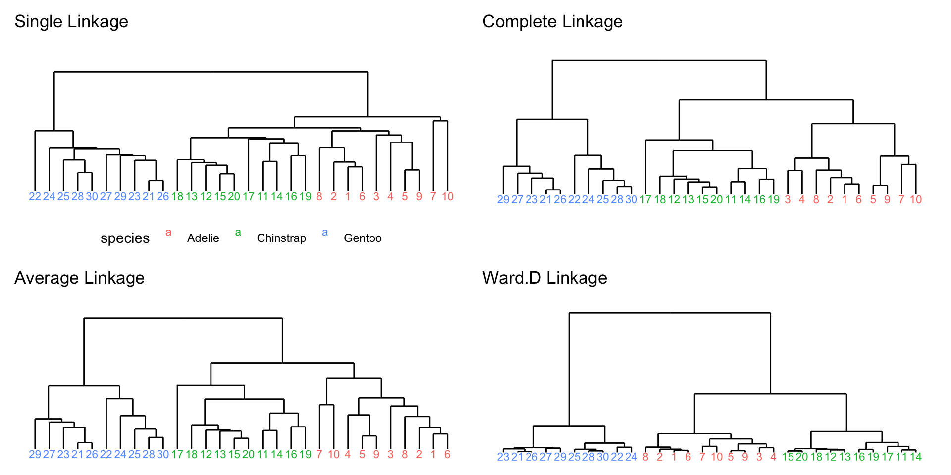 Different linkage for penguins data