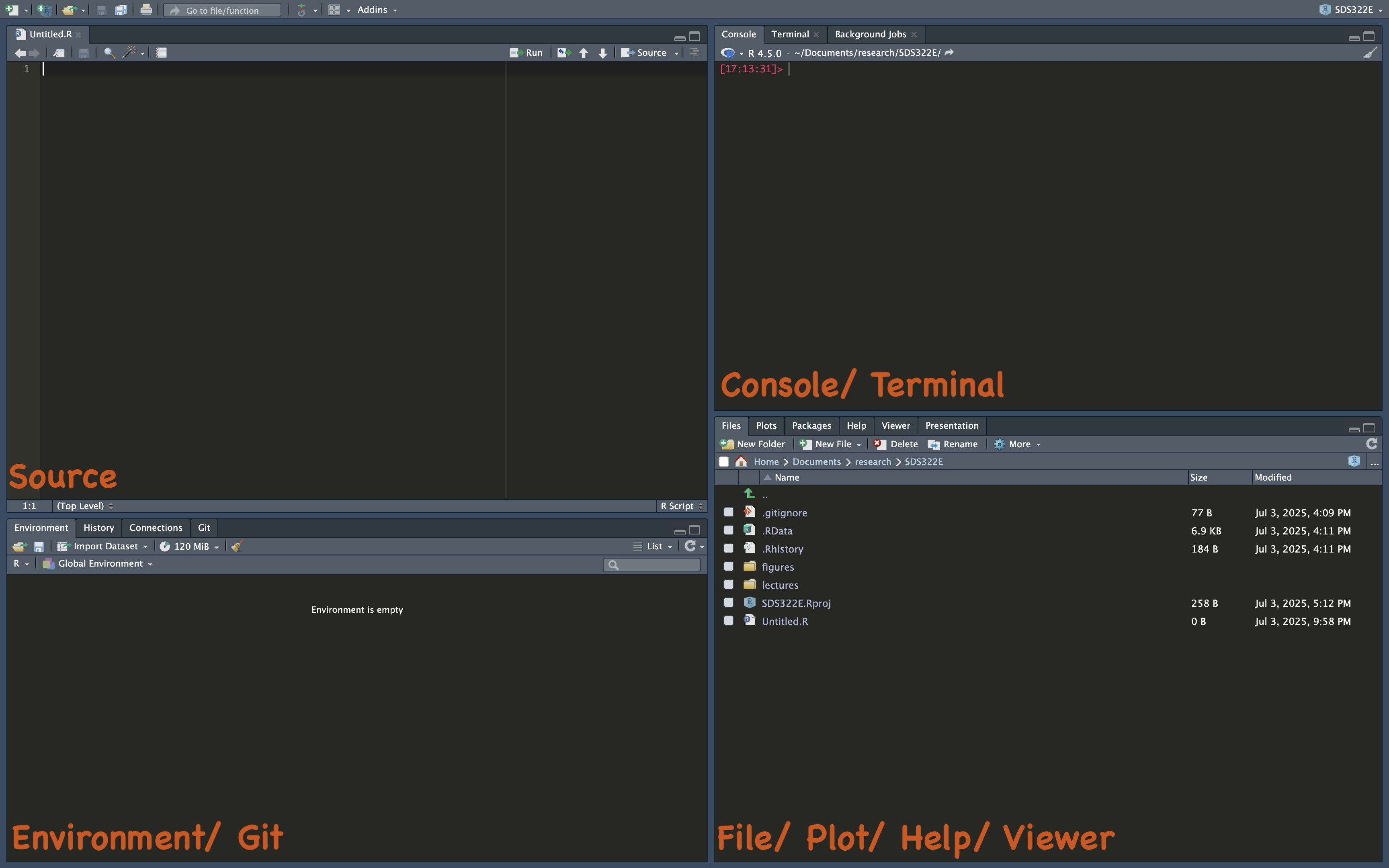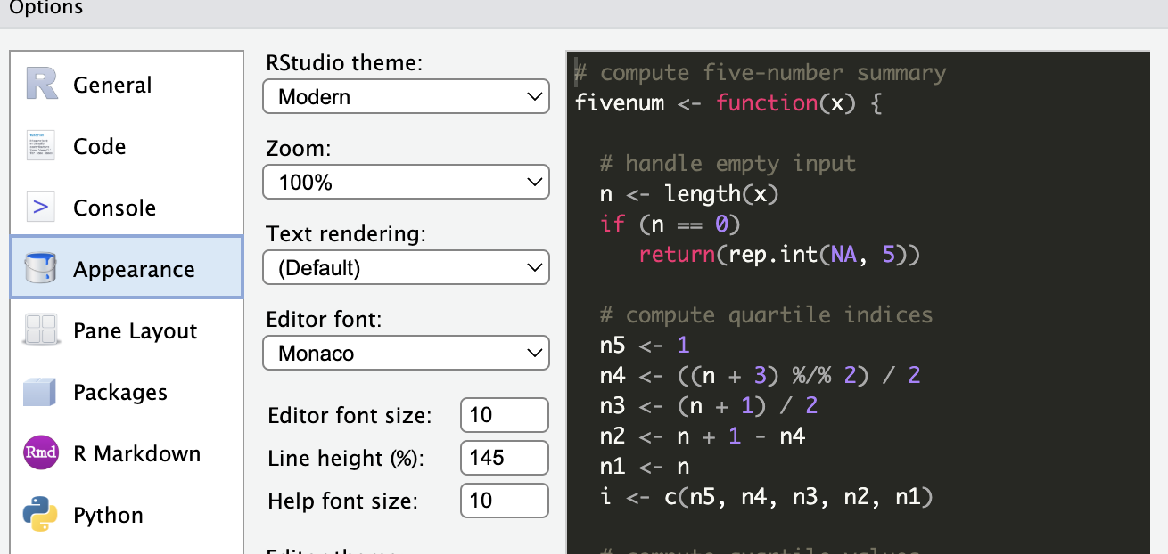 R.versionTools > Global Options (or Press Command + ,) to pull out the options panelGeneral speaking, you can navigate the course without knowing anything about Git and GitHub, but you will be able to see and know many things you would otherwise won’t if you do know a little bit.