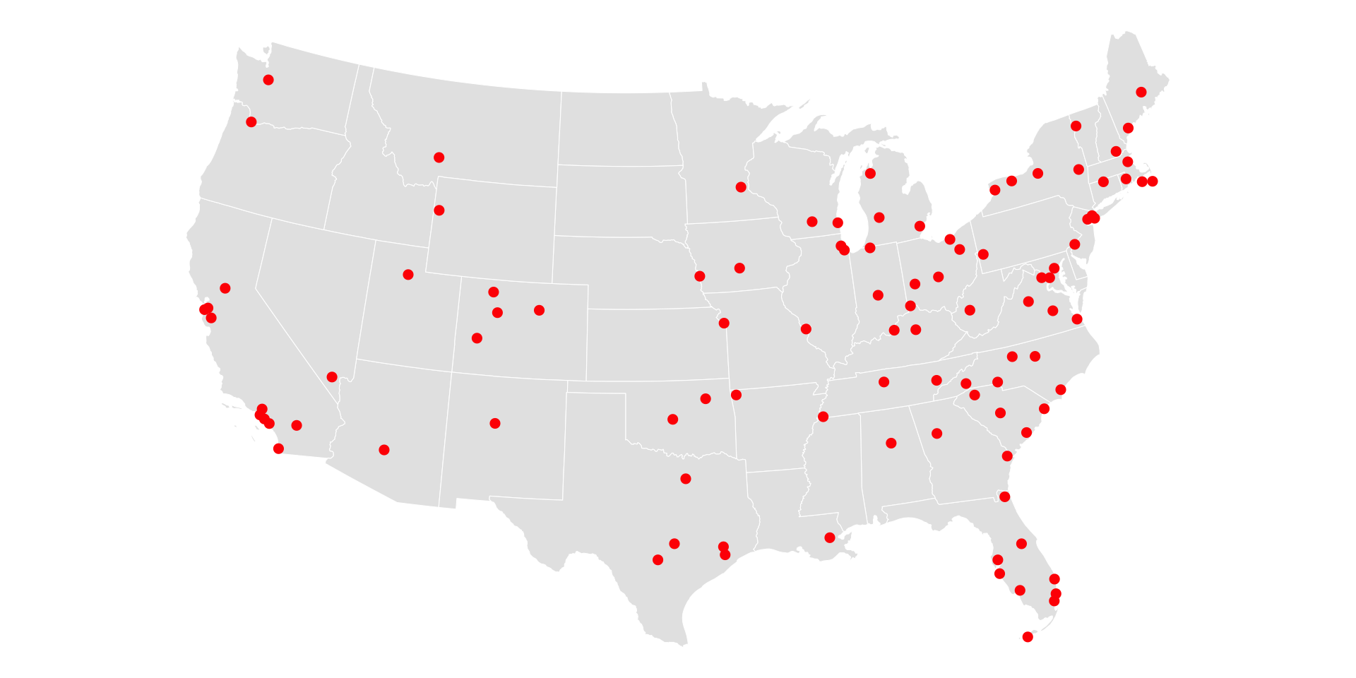 facet_wrap(vars(set), ncol = 2) Let’s plot all the origin and destination airports of all the flights in nycflights13::flights on the US map.